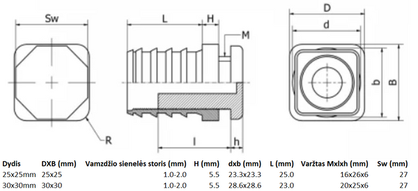 Reguliuojama kojelė, tiesi įsukama D30, D40, D50