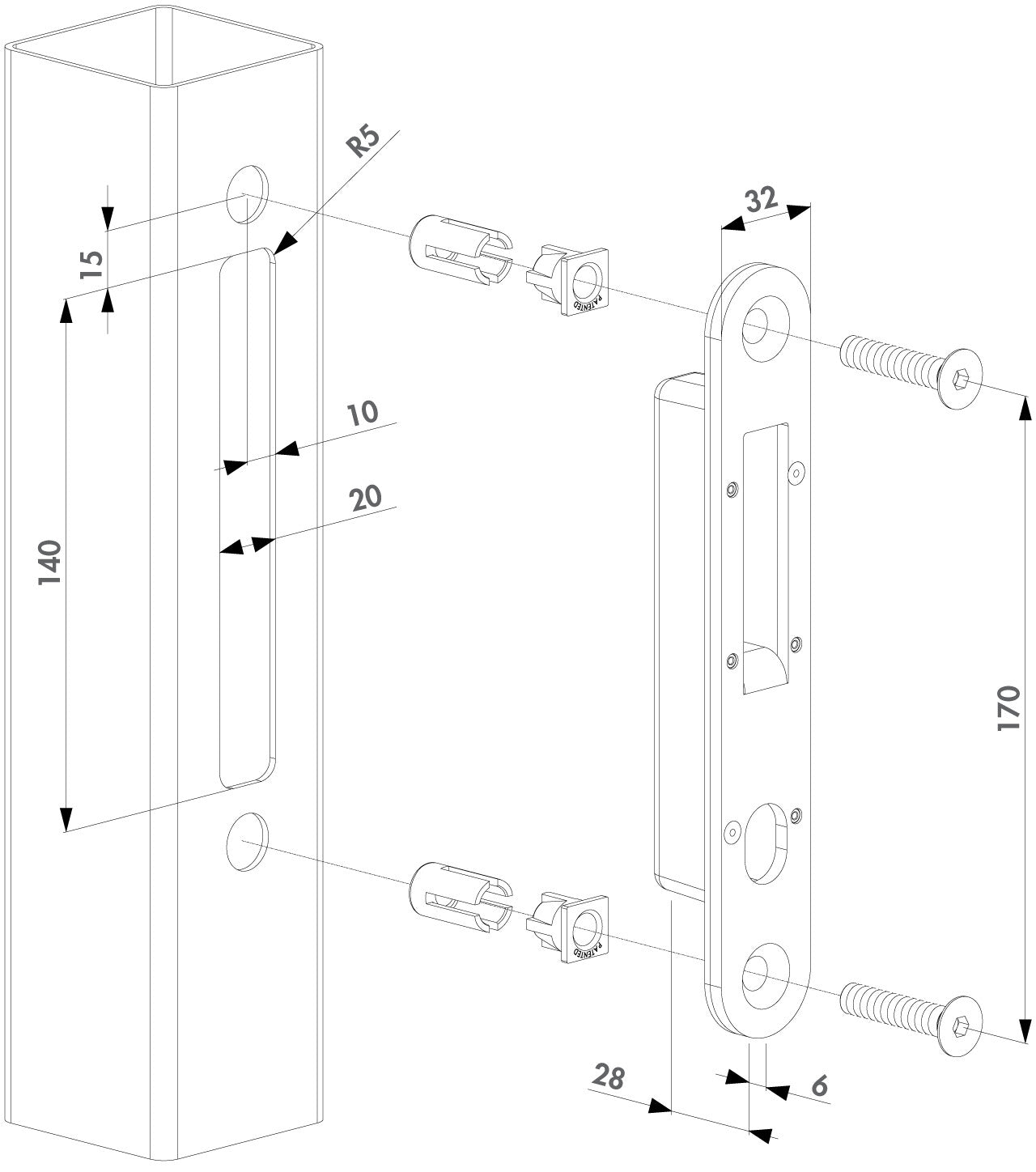 - Vidinė plastikinė dėžutė apsaugo nuo nešvarumų patekimo į vartų profilį