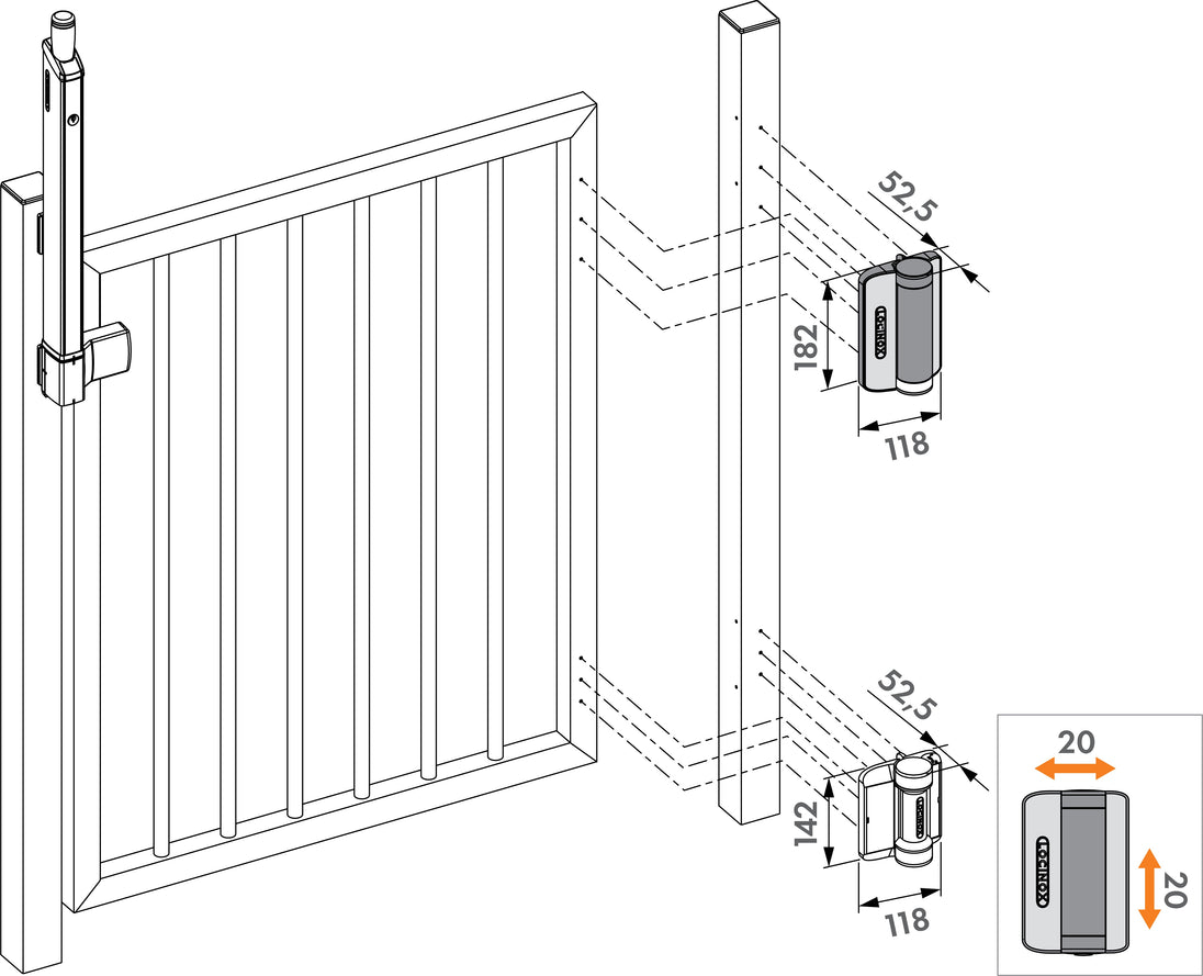 Estetiškas 180° vartų vyris-pritraukėjas su reguliuojamu uždarymo greičiu. Stiklo pluoštu sutvirtintas poliamido korpusas apsaugo pažangiųjų technologijų vidinius komponentus, todėl šis vyris puikiai veikia bet kokiomis oro sąlygomis. Dėka 20mm vertikalaus ir horizontalaus reguliavimo jį sumontuoti labai lengva. Tvirtinamas savisriegiais, taigi nereikia virinti. Caracal puikiai tinka baseinams, žaidimų aikštelėms, parkams ir sodo varteliams. Į komplektą įeina savaime užsidarantis vyris „Serval“ (mažesnis vyris, tvirtinamas vartų apačioje).