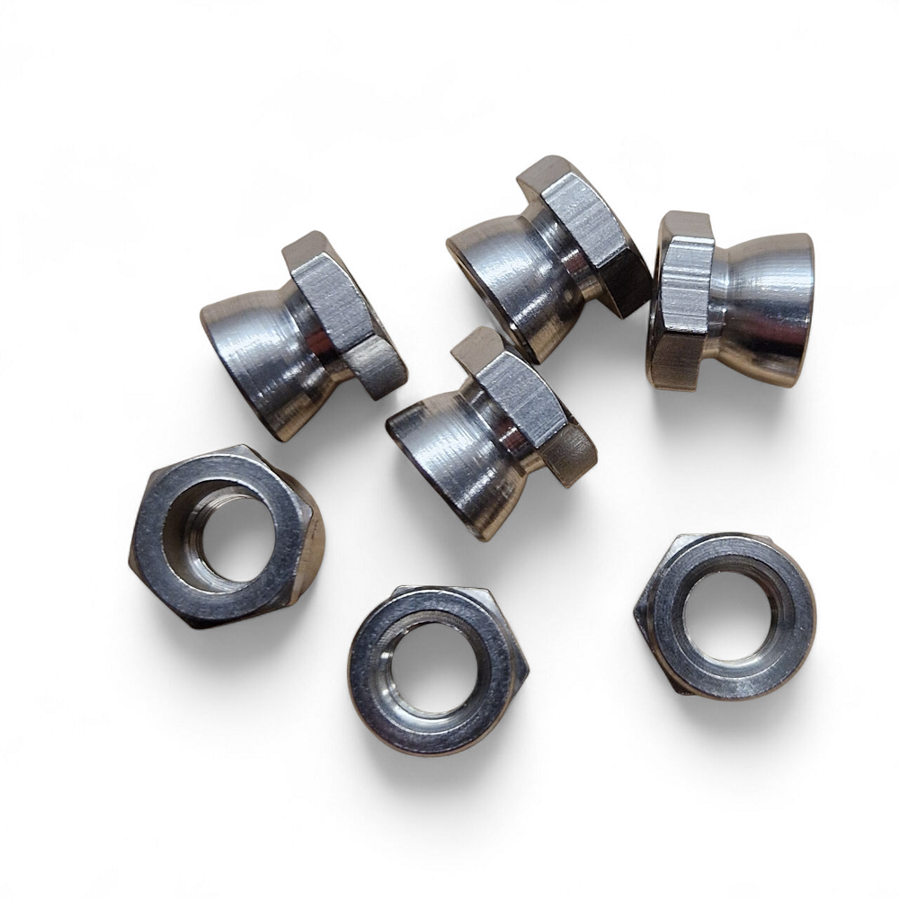 M8 dydžio nerūdijančio plieno nulaužiama veržlė (užveržus raktu lieka tik neatsukamas kūgis). Naudojama kartu su lenktais varžtais arba segmentinių tvorų apkabomis, ten, kur reikia užtikrinti saugumą, kad tvora nebūtų išmontuota. Tinka visoms mūsų parduodamoms tvorų apkaboms ir lenktiems varžtams. Kaina už 1 vnt.