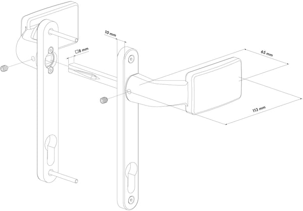 Juodos anoduoto aliuminio rankenos paviršinėms spynoms, B tipo