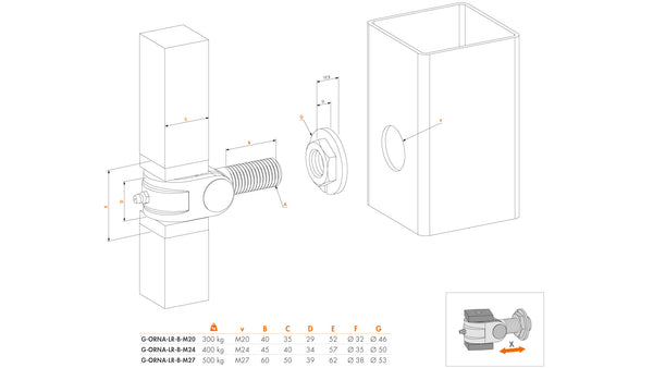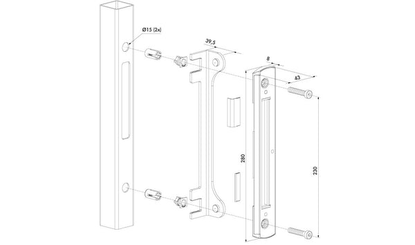 Įmontuojamos spynos FIFTYSET rinkinys 50mm ir didesniems profiliams