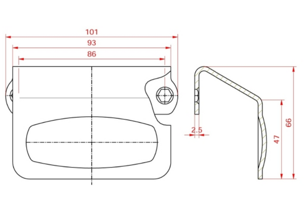 Anoduoto aliuminio rankenos įmontuojamoms spynoms, J tipo