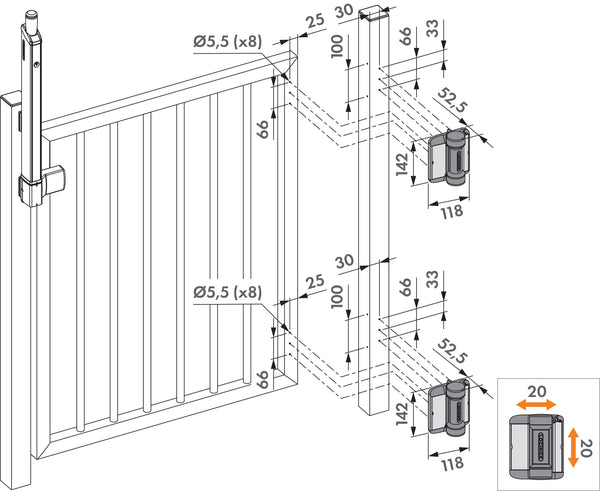 Virinami, 4 kryptimis reguliuojami vyriai 180° atveriamiems vartams, 2vnt