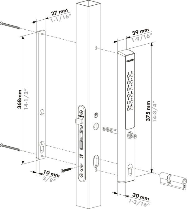 Baterija maitinamas kodinis užraktas VERA, įmontuojamoms spynoms