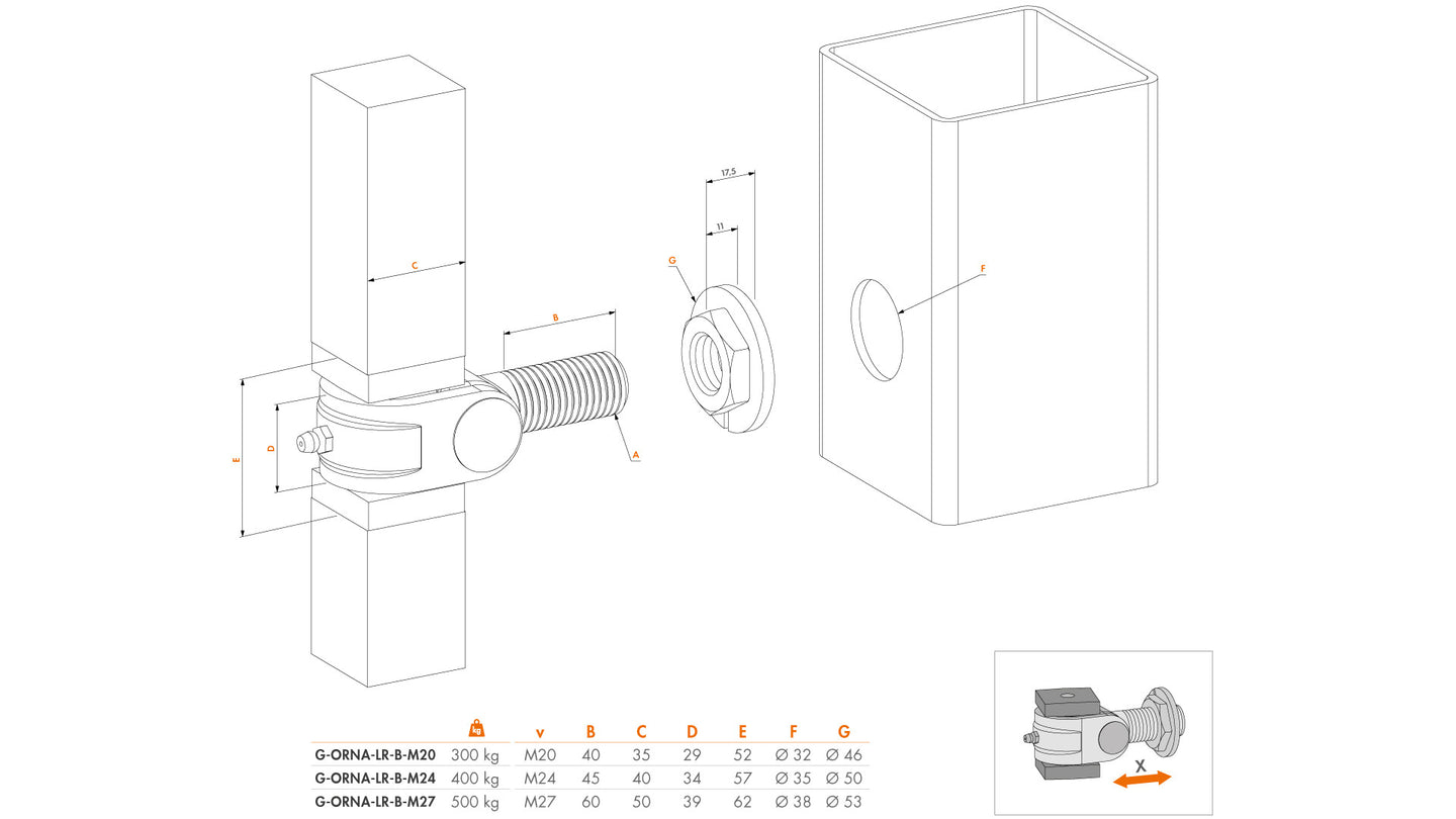 Locinox virinamas vyris dekoratyviniams vartams. Trijų dydžių (35x35mm, 40x40mm ir 50x50mm) kvadratinis blokas įvirinamas į vartų varčią ir taip sukuria dailų, integruotą vyrio tvirtinimą. Vyris turi tepimo tašką. Kaina už 1vnt.